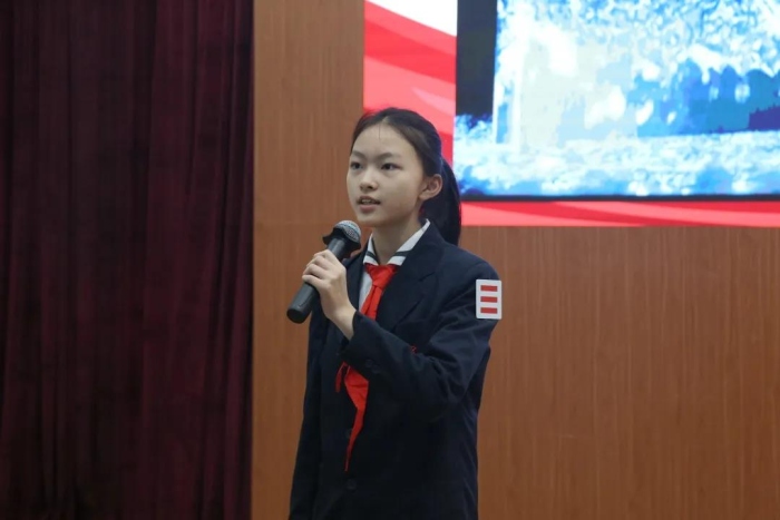 緊接著,六(1)中隊彭意作為學生代表發言。即將小學畢業的她,假期里不僅堅持特長的培養,更加注重體育鍛煉。北京冬奧會上的奧運健兒,帶給她一次又一次的感動,她鼓勵同學們,學習奧運精神,突破自我,勇攀高峰。