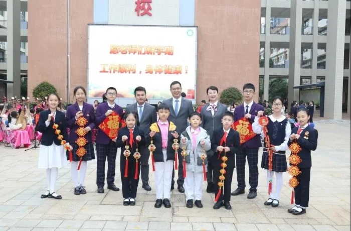 在校民樂團演奏的《春節序曲》中,拉開了大信學校開學典禮的序幕。