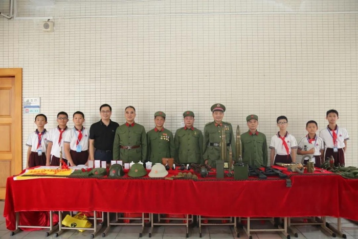 國防軍事訓(xùn)練不僅要訓(xùn)練身體,更要強(qiáng)化愛國思想!10月10日下午,大信學(xué)校迎來了對(duì)越自衛(wèi)還擊戰(zhàn)老兵,他們向七年級(jí)學(xué)生們展示了在革命戰(zhàn)爭(zhēng)中使用到的電報(bào)機(jī)、沖鋒槍子彈夾、迫擊炮彈、防毒面具等武器裝備。中山市最美退役軍人李克爺爺分享了他的參軍故事以及退役后致力于公益事業(yè)的事跡,同學(xué)們聽得津津有味,熱血沸騰。