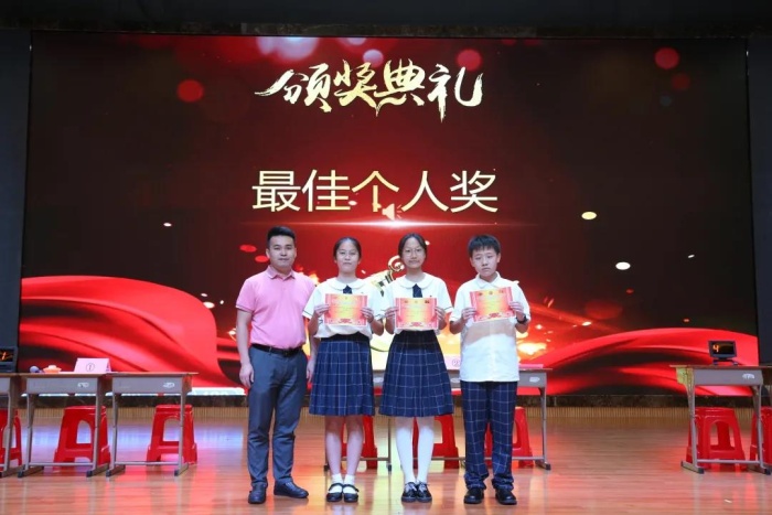 經過必答題、搶答題、風險題三個環節緊張激烈的角逐,第三小組邵雨馨、馮楨楨、湯博涵同學榮獲一等獎,同時這三位同學獲得突出個人獎,他們隨后將代表學校參加石岐街道法律知識競賽。另外,李安琪、盧哲宇、謝依雯小組榮獲二等獎,王紫涵、張宇楨、郭悠然小組榮獲三等獎。