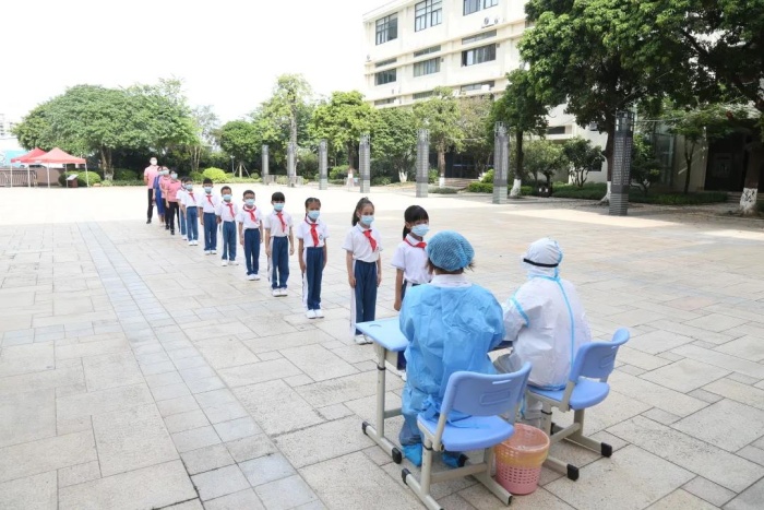 根據(jù)中山市2021秋季學(xué)期學(xué)校防疫要求,中山市大信學(xué)校于8月30日上午進(jìn)行學(xué)生返校防疫演練,此次演練主要內(nèi)容為陽(yáng)性病例發(fā)生時(shí)學(xué)校疫情防控相關(guān)應(yīng)急措施,通過(guò)演練,全校教職工進(jìn)一步熟悉了防控工作的各個(gè)環(huán)節(jié),對(duì)預(yù)案的處理流程、場(chǎng)地劃分、就餐與活動(dòng)、定崗定人等各環(huán)節(jié)的安排了然于心,為全校師生的健康安全保駕護(hù)航。