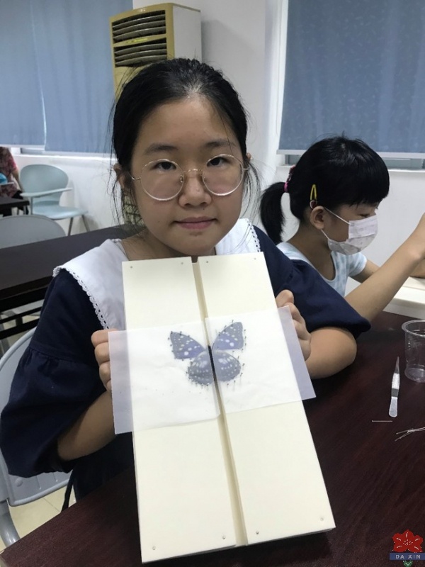 開營第一天,由鄺梓健老師主講——蝴蝶標本制作課程。鄺老師詼諧幽默的講課風格一開口就立刻吸引了同學們的注意!他繪聲繪色的先后向大家介紹了中國蝴蝶分布的種類和蝴蝶的生活史、蝴蝶的身體結構等相關基礎知識。在談到蝴蝶的生命周期短暫,大部分壽命不超過15天時,提出問題思考,為了留住蝴蝶的美,我們可以怎么辦?當然,可以把它們制成標本,從而引導學生樹立正確的價值觀,明確標本制作的初衷。本來設計的一個小時課程,因為同學們太過熱情,差不多近兩個小時才結束。在同學們和老師的共同努力下,每個人都完成了屬于自己的蝴蝶標本的制作!
