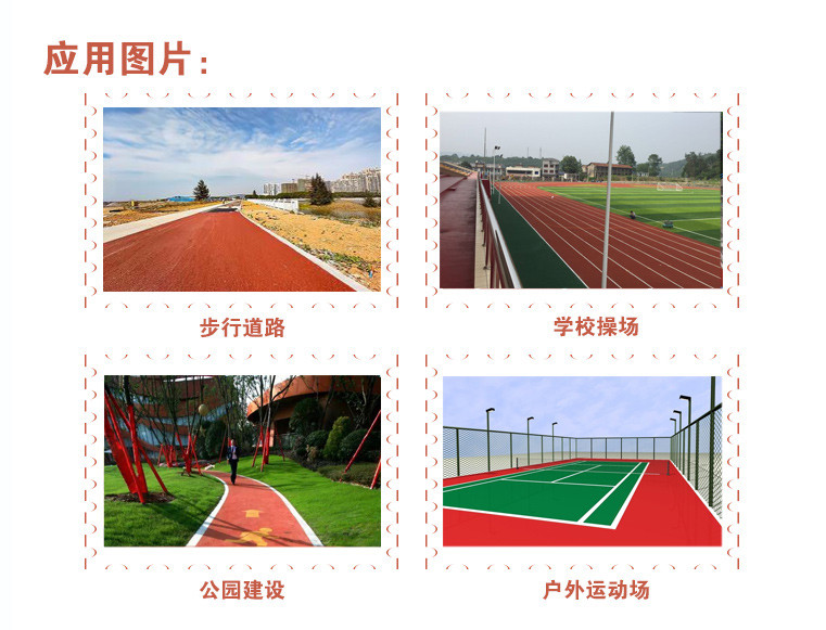 PU顆粒、顏料、助劑、填料組成。塑膠跑道具有平整度好、抗壓強度高、硬度彈性適當、物理性