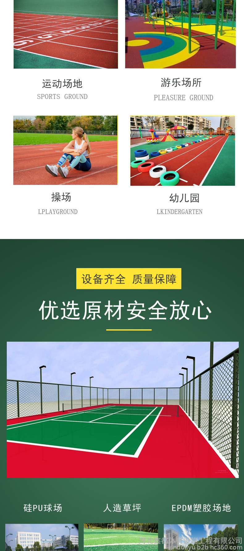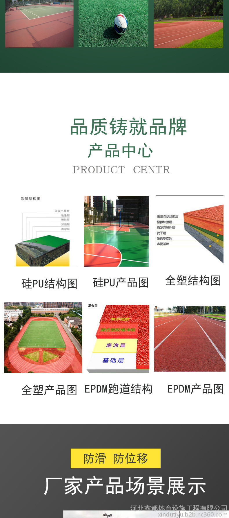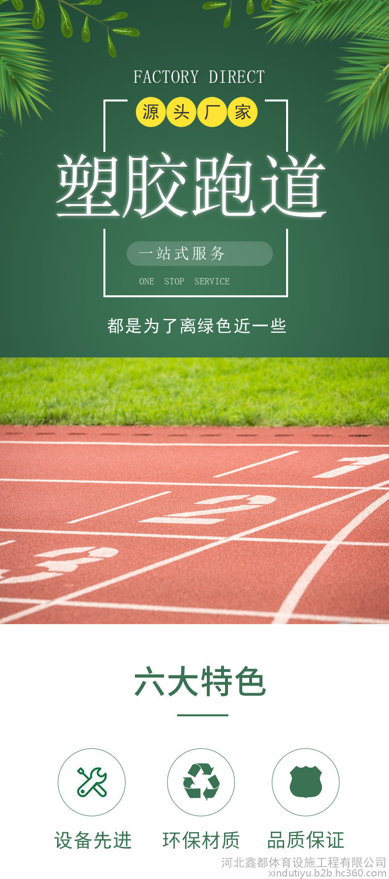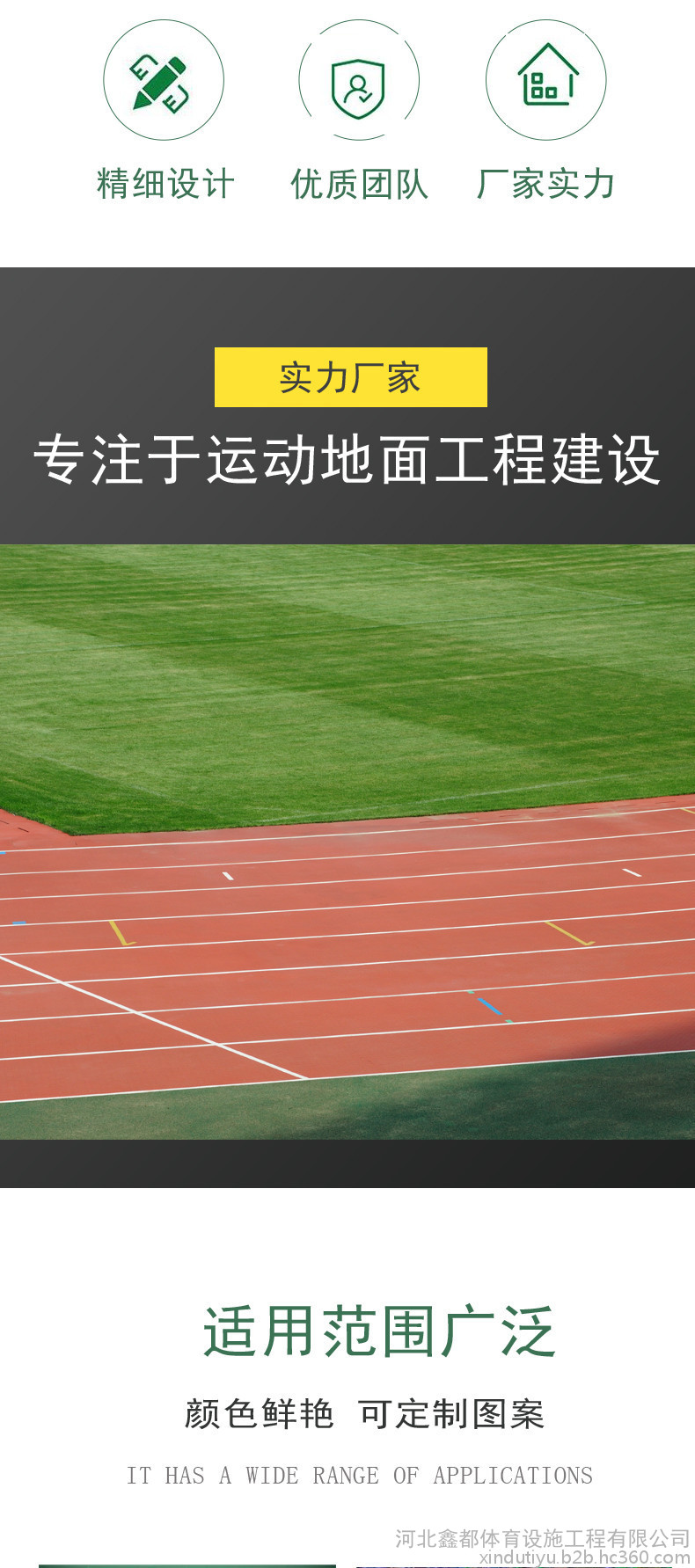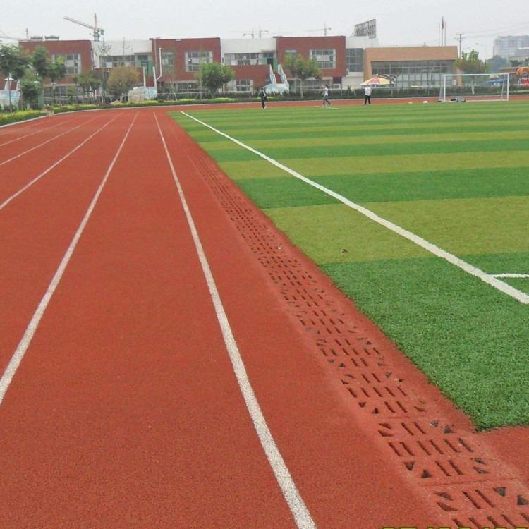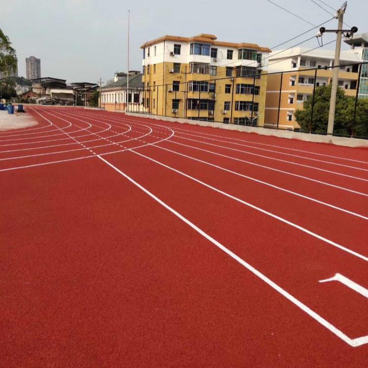 或PU顆粒、顏料、助劑、填料組成。塑膠跑道具有平整度好、抗壓強(qiáng)度高、硬度彈性適當(dāng)、物