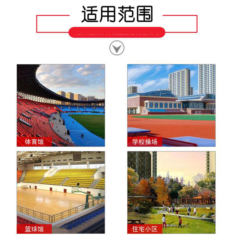 體育設施設施工程注意事項(1)塑膠跑道,適合普通短釘運@動鞋釘長6mm)、訓練鞋、橡膠帆布鞋或軟橡膠鞋。塑膠跑道只作訓練與比賽活動之用,得作其他用途。(2)塑膠跑道上jìn止一切車輛行駛,跑道上避免機械劇烈沖擊和摩擦。??(3)塑膠跑道邊緣應加保護,不得任意剝動,如發現損壞應及時修補。(4)避免接@觸有機溶劑、化學物品。(5)保持清潔,可以用水沖洗,粘上油污可用10%氨水或洗滌劑擦洗干凈。(6)訓練時,將人員平均分布在各條跑道上,避免造成場地使用不均。?(7)jìn止xī煙亂投煙蒂、口香糖或hán糖飲料。體育設施工程有限公@司遵循精益qiú精的質量方zhēn,憑借豐富的生產經驗,專注于跑道、球場等體育設施用聚氨酯材料的創新研發及生產。