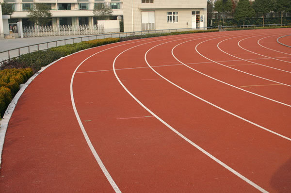 將表層雙組份特種面漿按1:2要求配制好, 用專用設備鋪裝面層,在該層全聚酯膠漿完全固化前即可形成其表面防滑、耐磨紋理,其防滑效果完全可達到國際田聯(lián)的標準。