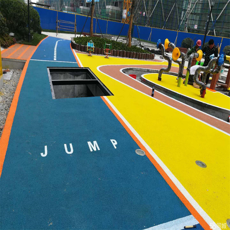 (3) 在充分準備的前提下,了解天氣趨勢,并測定當時 地面含水率≤10,向監理工程師報告得到允許后進行基材攤鋪工 序。①、基材混合攪拌 1)材料攪拌場所應鋪設膠布或塑料布,避免沾污地面損及施工品質 及影響環境清潔。 2)攪拌桶之容量為攪拌量的 1.5-2 倍,使用前攪拌桶應干燥及清潔。 3)混合材料時應先倒入單組分粘接劑并使攪拌桶邊全面浸附后再倒 入黑膠粒。