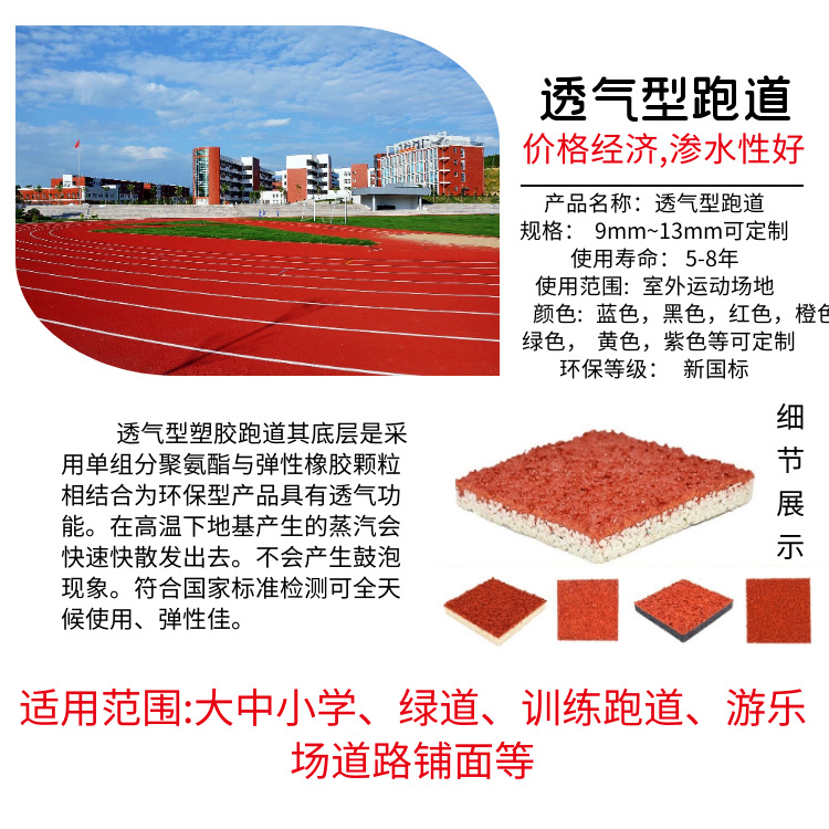 2、塑膠跑道在具有肯定排水設(shè)備的條件下,適應(yīng)全天運(yùn)用。塑膠跑道作為運(yùn)動(dòng)練習(xí)、競(jìng)賽和學(xué)生靜止及健身錘煉之用,不適作其它用處;