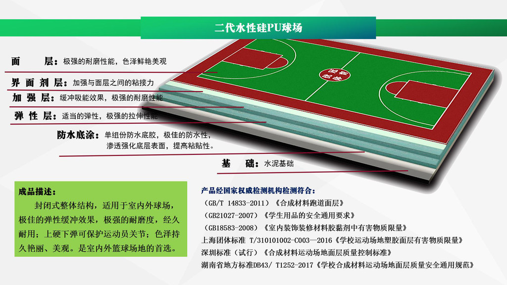 4mm二代水性硅PU環保塑膠球場材料,出廠材料價67元/平方。