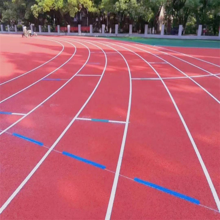 屆亞運會北郊賽場塑膠跑道的主賽區為了保厚度,誤差被控制在正差,所以平均厚度在毫米以上為了確保平坦性,鋪設跨度盡可能大。主跑道跨度為.米條路同時鋪設。非賽區跨度大于米。一般來說,南北半圓雨后一定會有局部積水現象。尤其是跳高區半圓更為嚴重。為了保坡度,采用“龜背式”施工方法。便于排水。防止塑膠跑道橡膠面鋪好后局部發生氣泡脫殼,嚴格控制基層密度,防止瀝青基層自身嵌合脫殼粘結力差表面氣化橡膠面斷裂基層密度不夠的地方,可以用鉆頭鉆孔,灌注橡膠橡膠釘的方法加固。為確保平整坡度