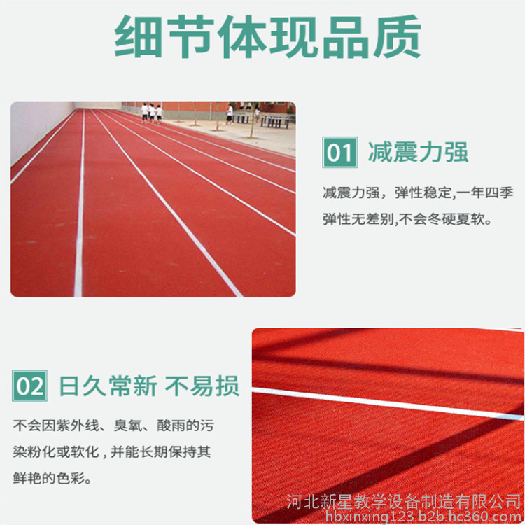 塑膠跑道的主要成分是丙烯酸和高質(zhì)量樹脂,其材料類似于盛放食品的方便袋,符合環(huán)保型面層材料要求。塑膠跑道的原材料對(duì)環(huán)境、人體無(wú)毒無(wú)害。且具有防紫外光、防磨損、防爆裂、抗老化、壽命長(zhǎng)、容易保養(yǎng)、維修費(fèi)用低等特點(diǎn)。