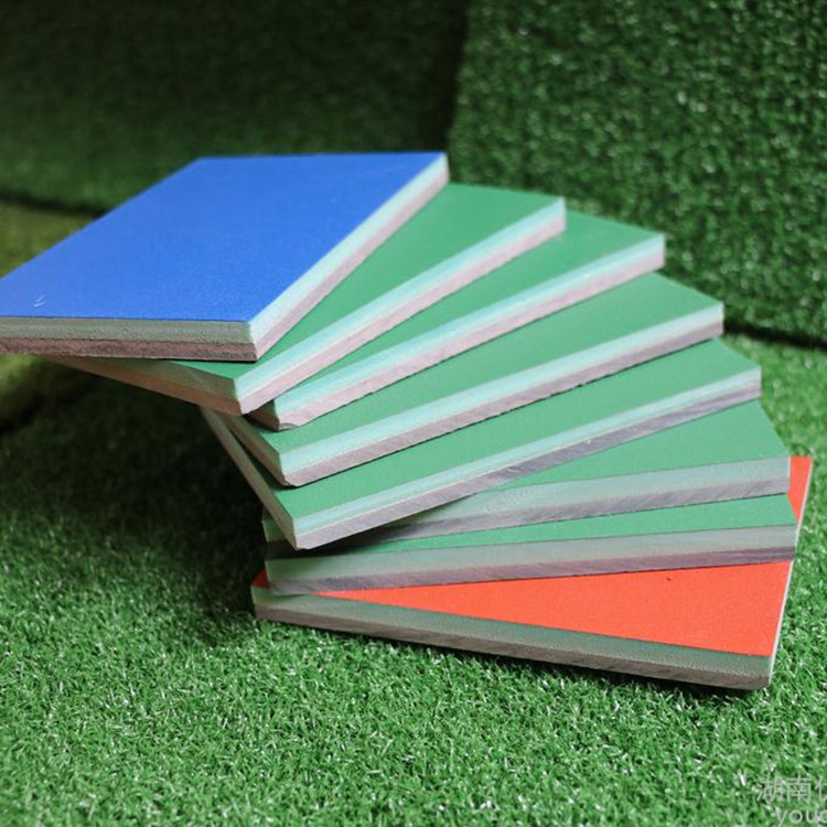 5、紋理層:用丙烯酸調速料摻入丙烯酸色料后加水全場涂刮二層丙烯酸調速料是一種含石英砂丙烯酸乳液的混合物。使紋理表面濃厚并且耐久,提高調節球速及耐磨的功能。每層干透及養護需24小時。