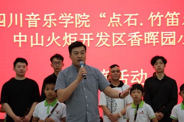 為豐富學校竹笛特色教育活動形式,激發學生竹笛學習熱情,弘揚傳統文化,5月20日下午,開發區香暉園小學迎來中國音樂家協會竹笛學會理事、四川音樂學院“點石·竹笛樂團”團長沈立思及該樂團副團長張旭豪、成員韓志成、寇笑軒一行四人至校交流指導,學校副校長陳虹崗、竹笛藝術教育總監葉建林、竹笛教師余夢園等熱情接待。