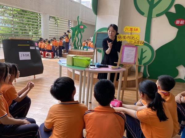 下午兩點,中山火炬高技術產(chǎn)業(yè)開發(fā)區(qū)中心小學和第八小學的部分學生齊聚中心小學“量感圍學園”,在兩校數(shù)學老師的組織引導下有序地開展“量感”主題圍學賽活動。各活動區(qū)域負責老師精心設計,按“量”的特點準備了豐富的學具,根據(jù)不同年齡段學生對已有“量”的感受,引導學生參與活動,學生通過估一估、掂一掂、想一想、稱一稱、算一算、量一量、比一比、畫一畫等方式,先體驗學習再比賽。活動中,負責老師在學生明晰活動規(guī)則后,適時引導,喚醒學生已有量感,提升學生解決生活實際問題的能力。看,估時間達人區(qū),估測時間時,讓學生充分感受1分鐘有多長,比一比誰估得最準,在活動中幫助學生建立一個“1分鐘標準”, 領悟10分鐘、1小時等更長的時間標準,有了這些標準,學生在估測時就不難估測出經(jīng)過時間的長短;瞧,估質(zhì)量達人區(qū)域,老師先出示標準量,讓學生掂一掂,直觀感受1克、10克、100克、500克、1000克物品的輕重,并記住這種感覺,再參與接下來的估測活動,一個回形針的質(zhì)量、一乒乓球的質(zhì)量、一個大西瓜的質(zhì)量……活動中,這邊傳來孩子們在揭曉實際數(shù)量時驚訝的聲音,那邊又傳來自己估測最佳的歡呼聲……此處孩子們在老師講解后恍然大悟,相視而笑;彼處孩子們先是全神貫注的思考,而后又是握緊拳頭等待答案揭曉的焦急……不知不覺,孩子們輕松愉悅地完成了學習任務。最后,根據(jù)幾輪的比賽積分情況評出“量感”估測達人一二三等獎。活動結束,學生還意猶未盡,流連忘返。