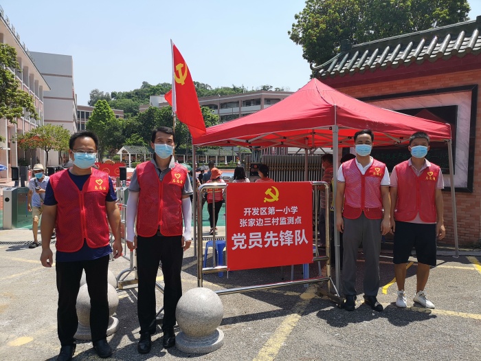 7月22日,中山火炬開發(fā)區(qū)在對(duì)中高風(fēng)險(xiǎn)地區(qū)返粵人員排查核酸檢測(cè)中,發(fā)現(xiàn)1例新冠肺炎核酸陽(yáng)性人員。時(shí)值暑假,開發(fā)區(qū)第一小學(xué)黨支部和廣大教師隊(duì)伍,迅速反應(yīng),取消休假,把疫情防控作為當(dāng)前壓倒一切的重大任務(wù),深入開展“黨旗飄在一線、堡壘筑在一線、黨員沖在一線”的防疫行動(dòng)。