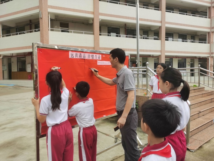 6月26日是國際禁毒日,圍繞“珍愛生命,拒絕毒品”這一主題,6月25日早上八點,火炬開發區第一小學全體師生在操場上舉行了禁毒宣誓簽名活動。