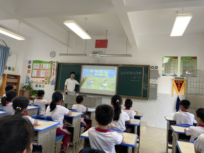 接著,陳澤冰老師為四5班的同學帶來了一節(jié)融合教育班會課——《不可思議的朋友》。本次主題班會活動由四個部分組成。陳老師通過圖片的展示,讓學生知道世界上,有這樣一群小天使,他們悄悄來到我們的身邊卻遙不可及,他們被稱為“星星的孩子”。過渡到繪本《不可思議的朋友》的閱讀。接下來,陳老師通過提問讓學生帶著疑問進行閱讀,并適時引導。活動最后,陳老師讓孩子們談談自己的感悟,談談在校園中應該如何與“星星的孩子”相處。孩子們暢所欲言,在整個課堂學習的過程中,學生們始終保持濃厚的學習興趣和愉快的學習情緒,開展此次活動的目的在于讓學生親自體悟,在對待特殊同伴時有了更多的理解與包容。