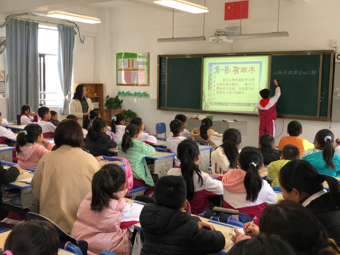首先,胡老師在四(2)班展示了一節《人物外貌描寫四大招》的習作課。課堂上,胡老師引導學生根據外貌描寫的四大技巧,對現場觀摩學習的老師進行外貌描述,充分調動了學生上課的熱情。學生生動有趣的發言,引得現場歡笑聲和掌聲此起彼伏,課堂氛圍輕松活躍。在歡樂的學習氛圍中,四種人物外貌描寫的方法在學生心中豐富形象起來,課堂上,學生的練筆層次分明、善用修辭,寫出的人物形象更為鮮明。胡老師巧妙地將習作教學與學生生活相結合,為生活和習作架構了一座有效橋梁。這樣充滿智慧的課堂,為寫作教學提供了很好的氛圍。