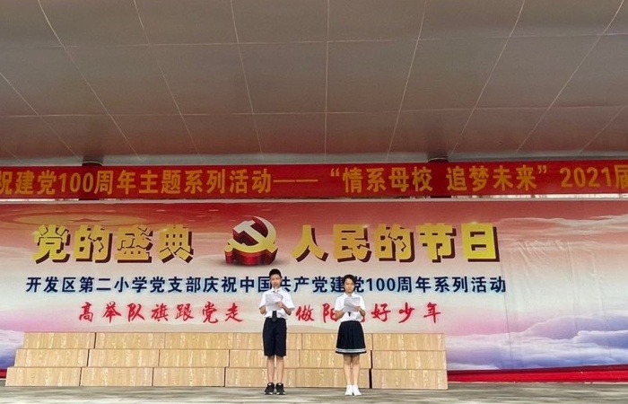 開發(fā)區(qū)第二小學(xué)2021屆學(xué)生畢業(yè)典禮在學(xué)校各部門通力協(xié)作下圓滿落下帷幕,畢業(yè)生們和老師們用最深情的方式向祖國(guó)百年華誕獻(xiàn)禮。衷心祝愿開發(fā)區(qū)第二小學(xué)2021屆莘莘學(xué)子樹立遠(yuǎn)大志向,奮發(fā)圖強(qiáng),勇?lián)鐣?huì)責(zé)任,走好人生路!