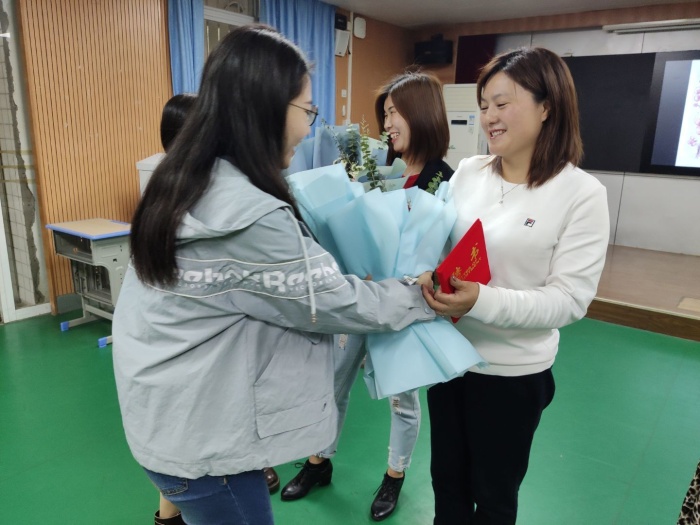 接著,陳老師宣讀結對名單,由今年新調入二小的四位青年教師和有經驗的老教師結成了四組對子。隨后,四位師傅上臺接受周瑞珍校長頒發的聘書,徒弟向師傅獻花表達感激之情。一紙聘書,承載的是沉甸甸的囑咐;深深一躬,滿含著青年教師成長的渴望;緊緊相握的雙手,蘊含著師徒結對的濃濃情誼。相信每一對師徒都能攜手共進,共同成長。