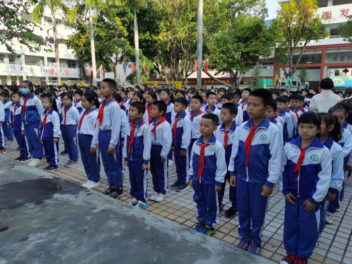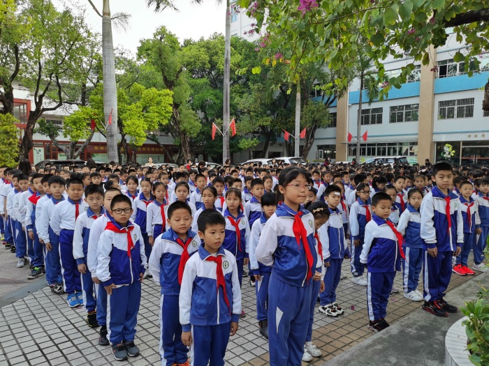 開學典禮在嘹亮而雄壯的國歌聲中拉開帷幕,少先隊大隊輔導員林慧老師主持典禮。該校馮麗芬副校長首先講話,她在講話中充分肯定上學期全體師生所獲得的成績,并對新的學期提出了新的愿景,希望學生謹記“十有”生活學習常規和“十有”課堂學習常規,培養良好習慣。要求全體學生要做到八個“一”:有一顆愛國之心、有一份責任擔當、有一個健康身體、有一筆工整好字、有一口流利故事、有一項樂器技能、有一份漂亮作品、有一份優質答卷,爭做“八有”陽光少年,為學生的前進指明了方向,鼓勵學生繼往開來,追求卓越。