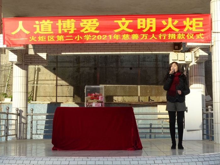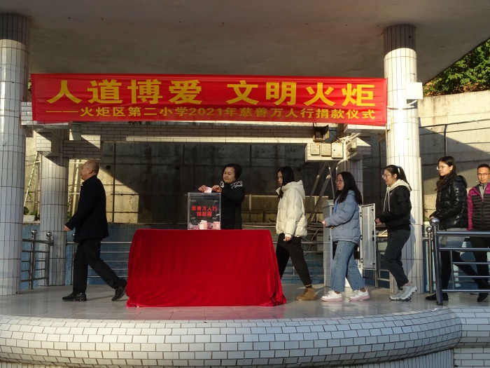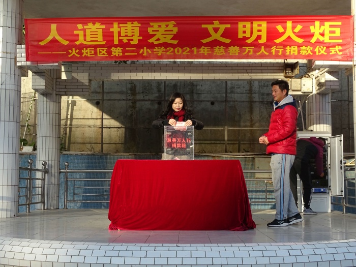 為積極響應2021年市、區慈善萬人行活動倡議,弘揚人道博愛精神,倡導中華美德,唱響新時代主旋律,營造互幫互助互愛的社會氛圍,為建設文明火炬區加快高質量崛起貢獻力量,2020年12月31日上午,開發區第二小學舉行主題為“人道博愛,文明火炬”2021年慈善萬人行義捐活動。