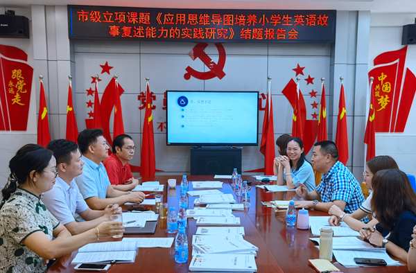 2021年6月25日上午,開發區三小市級立項課題《應用思維導圖培養小學生英語故事復述能力的實踐研究》結題報告會順利舉行。報告會邀請了中山市教育教學研究室英語教研員張泰剛老師、辛鍵老師,西區街道教育和體育事務中心教研員姚佳老師、開發區教育事務指導中心教研員謝柏祥老師進行指導。開發區第三小學劉光旗校長、吳書麗副校長和全體課題組成員參加了會議。會議上,專家一致認可并高度評價了三小的課題研究成果,課題順利結題。