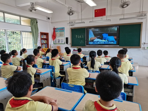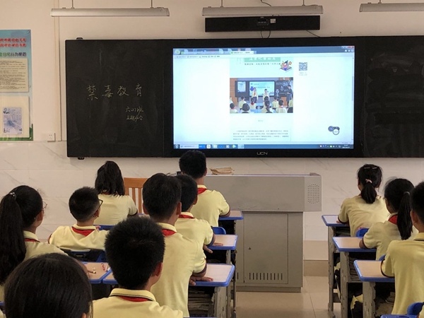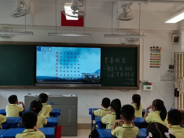 首先,各中隊輔導員老師組織學生觀看了由該校王麗教師執教的視頻《滾蛋吧,毒品君》。該視頻先從兩名學生深情朗誦《爸爸您回來吧》,讓孩子們深刻體會到吸毒對家庭的危害。接著從毒品的種類及其嚴重危害,國家為什么要組織實施青少年毒品預防教育,如何有效深入推進青少年毒品預防等方面,用一個個鮮活的事例和相關的視頻講解為廣大師生普及了禁毒知識,并告誡廣大師生們要遠離毒品、珍愛生命,增強抵御毒品的能力。