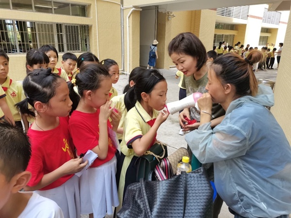 本次游園活動由學校家委負責組織,通過一系列有益有趣的游園項目,展現孩子的童真童趣,體現他們的幸福生活。下午兩點,游園活動正式開始,原來安靜的校園一下子沸騰起來。有培養孩子團結合作能力的“背對對夾球”比賽,有旨在鍛煉孩子空間方向感的“盲人擊鼓”,有考驗孩子細心和耐性的套圈比賽,有體現孩子聰明智慧的猜詞秀,有鍛煉孩子肢體協調性的“海獅頂球”,更有趣的是“兩人三足”“吹球過河”“比眼力”等。孩子們個個摩拳擦掌,躍躍欲試,盡管天氣炎熱,孩子們汗流浹背,可是游戲的熱情絲毫不減,不時傳來陣陣歡聲笑語。