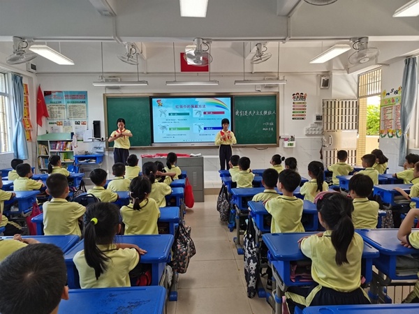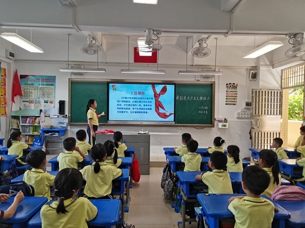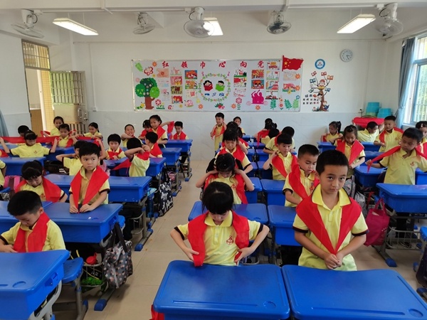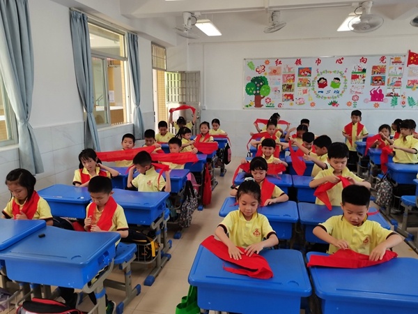 為了進一步培養學生熱愛黨、熱愛祖國、熱愛人民的高尚品質,激勵他們爭當新時代好隊員,2021年5月18日下午,在迎來中國共產黨建黨100周年之際,火炬開發區第三小學大隊部利用少先隊活動課,由大隊委員為一年級的同學開啟了生動而嚴肅的教育活動,孩子們備受鼓舞愛國愛黨之情更加飽滿,對加入中國少年先鋒隊充滿期待!
