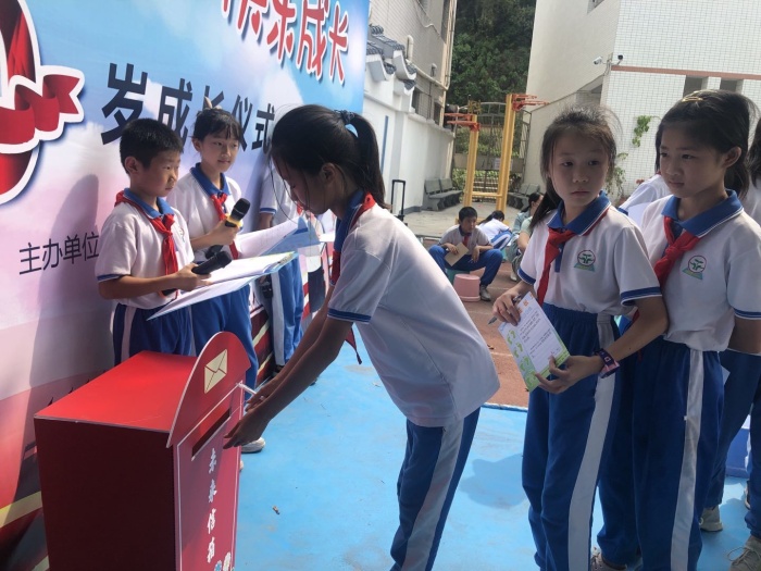 十歲是一個(gè)逐夢起飛的年紀(jì),“逐夢中成長”篇章承載了孩子們告別懵懂,奔向少年的期待,也承載了孩子們告別頑皮,學(xué)會(huì)自律的責(zé)任擔(dān)當(dāng)。隨著四年級全體學(xué)生將夢想卡投入“未來郵箱”,本次成長儀式也落下了帷幕。