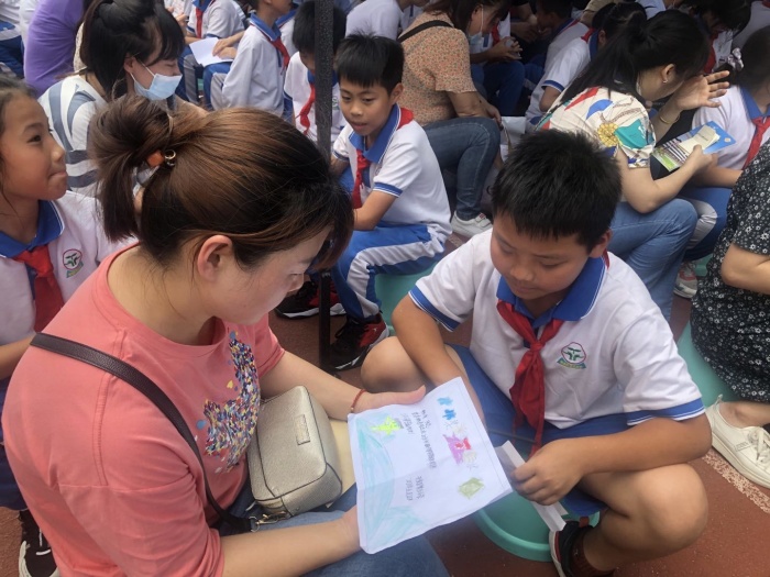 莊嚴(yán)的升旗儀式結(jié)束后,翻開了“祝福中成長”的新篇章。學(xué)校校長胡冬梅發(fā)表了講話,為四年級的同學(xué)們送上了成長的祝福和期待。中國共產(chǎn)黨成立100周年之際,學(xué)校期許每一個(gè)孩子童心向黨、學(xué)會(huì)感恩、知曉責(zé)任、逐夢成長,為祖國的明天而努力學(xué)習(xí)、練就本領(lǐng)。四年級全體教師帶來詩朗誦《希望——致十歲的你》,祝愿孩子們在慶祝建黨100周年同時(shí),也能心懷祖國,做自尊、自愛、自立、自強(qiáng),奮發(fā)向上、積極進(jìn)取的新時(shí)代好少年。伴隨著歌曲《長歌行》,儀式進(jìn)入了“快樂中成長”篇章。看著孩子們自信快樂地在祖國媽媽的懷抱中幸福成長,在第五小學(xué)的校園里吮吸著知識的甘露,收獲著快樂和友誼,家長們喜笑顏開,情不自禁地用手機(jī)記錄下了這一難忘瞬間。