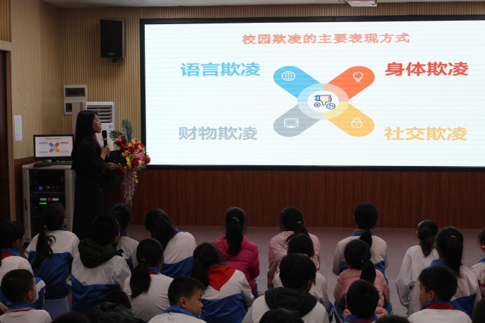 為預防校園欺凌的發生,同時做好未成年人思想道德建設,加強社會主義核心價值觀教育,扎實推進青少年法治教育工作,2021年1月8日下午,中山市開發區第五小學邀請中元律師事務所陳燕維律師在綜合電教室為五年級學生開展預防校園欺凌專題講座。