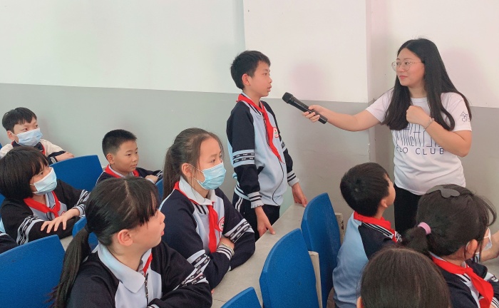 在課堂上,社工與同學們熱情互動,通過知識搶答、趣味小游戲等,進一步增強了同學們垃圾分類的意識和保護環境的責任心。