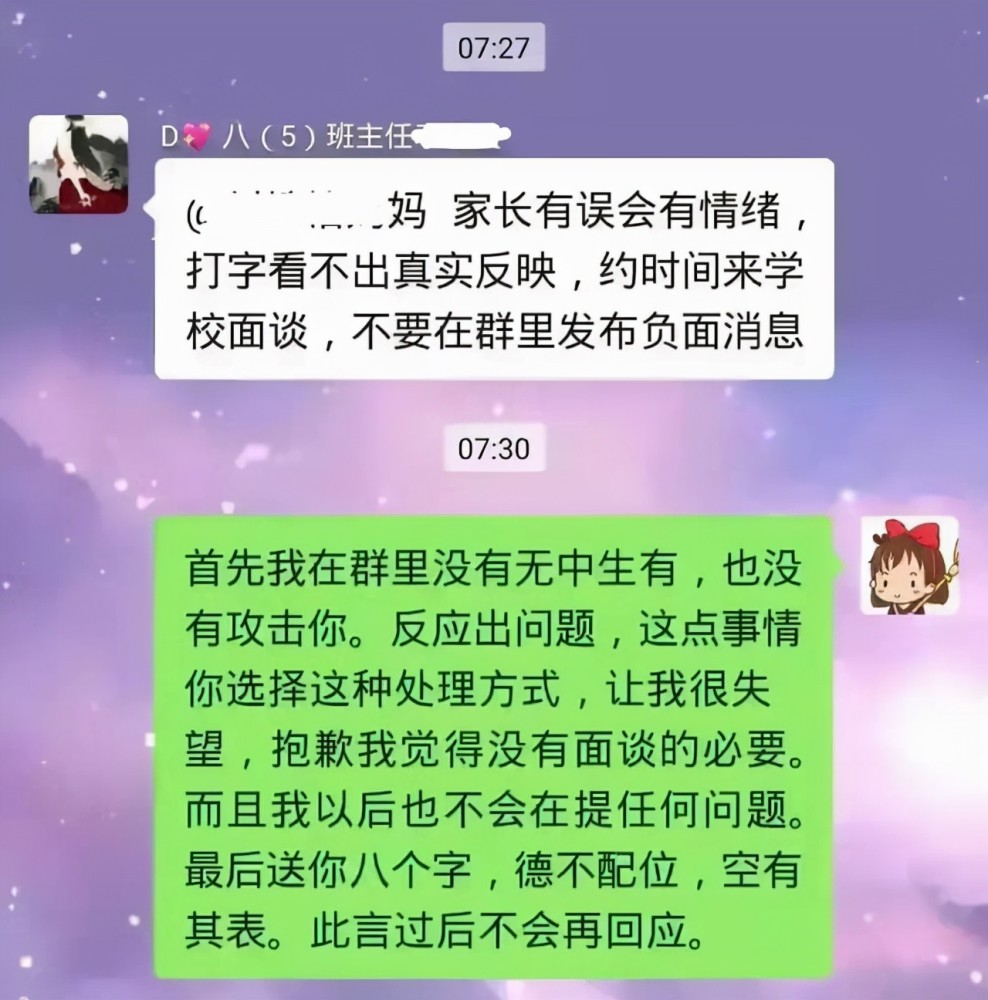 老師邀請這位家長去學校面談,家長丟下一句狠話:“德不配位,空有其表。”