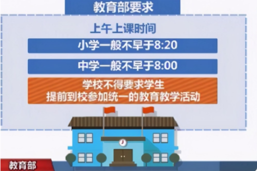 針對中小學生睡眠不足的問題,教育部發布了暖心通知,對中小學生早上到校的時間有所調整,小學上課時間不可以早于8點20,中學上課時間不可以早于8點。