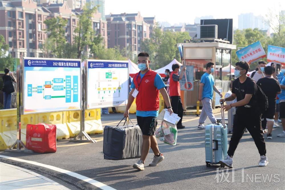 家長送到校門口,新生自行進入校園,家長不能陪同。該校黨委書記向家文在校門口“把關”,他告訴記者:“學生進入大學,要學會自主自立,不能由家長包攬一切,自己完成報到手續,就是進入大學的第一課。學校已安排老師和學生志愿者提供引導、幫忙搬運行李。家長要‘放手’,也可放心。”