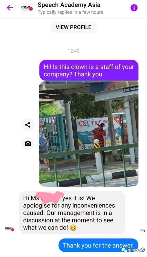 目前警方已證實,小丑是Speech Academy Asia教育中心的工作人員。