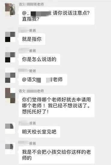 看著群聊截圖,實(shí)在難以想象這是一位班主任在和家長進(jìn)行“親切交流”,群里面的家長也紛紛憤怒了,表示明天我們校長辦公室見。