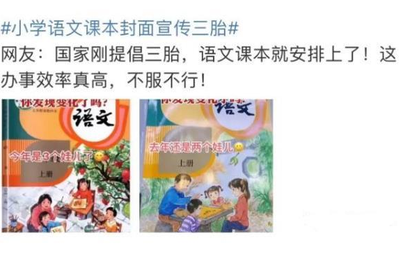 對(duì)此,在一結(jié)合小學(xué)語(yǔ)文教材封面所傳遞出的信息,有很多網(wǎng)友猜測(cè)可能是和三胎政策有關(guān),相關(guān)部門為了提倡三胎政策才對(duì)封面進(jìn)行了改變。