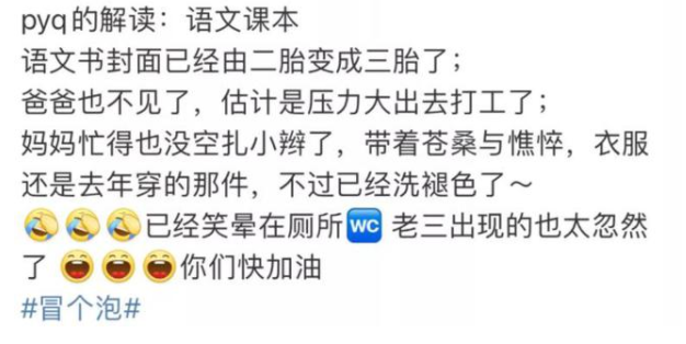 從網(wǎng)友們對(duì)小學(xué)語(yǔ)文教材封面的聯(lián)想,也能感受到對(duì)三胎問(wèn)題的生育焦慮和教育焦慮。不過(guò)這一系列問(wèn)題都在進(jìn)一步解決中,在觀望三胎政策的家庭也可以繼續(xù)等待政策的改善。
