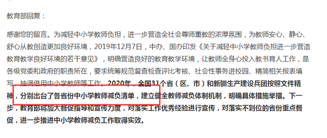 教師群體作為食物鏈最低端的存在不得不向教育部尋求幫助,畢竟憑借他們自己的力量真是難以抵抗,所以有人就在網(wǎng)絡(luò)上向教育部進(jìn)行提問。并且教育部在收到提問的第一時(shí)間,回復(fù)。