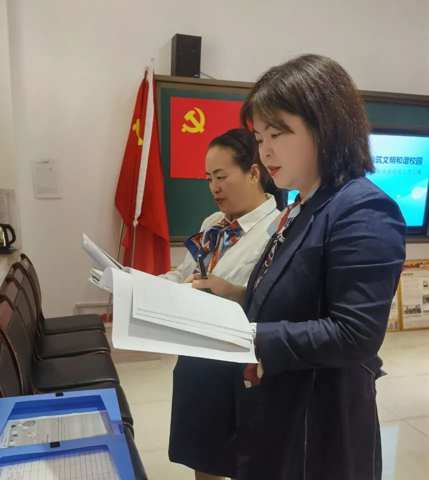 惠育小學校長武靜從學校概況、制度建設、氛圍營造、活動開展等幾方面對學校的語言文字規范化達標建設工作作了匯報。