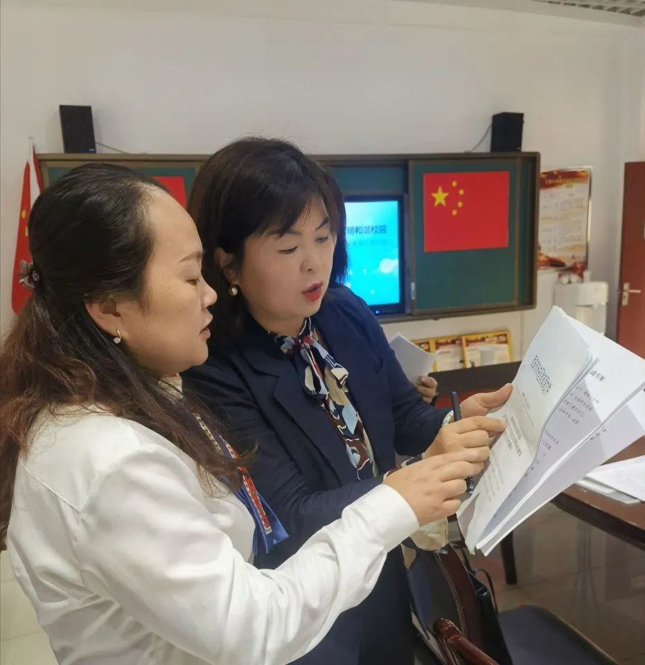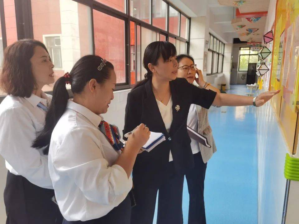 未央區語委辦王蓉老師、侯若忻老師,未央區進校教研室中學語文教研員王敏霞,市級語言文字示范校大明宮小學副校長何凱祥,一行4人,通過聽取匯報、查閱資料、查看校園文化、學生教師座談等幾個環節對“名校+”教育聯合體語言文字工作進行了全面的檢查和了解。檢查組首先聽取了“名校+”聯系人三星小學副校長白亞榮的“名校+”教育聯合體語言文字工作匯報。