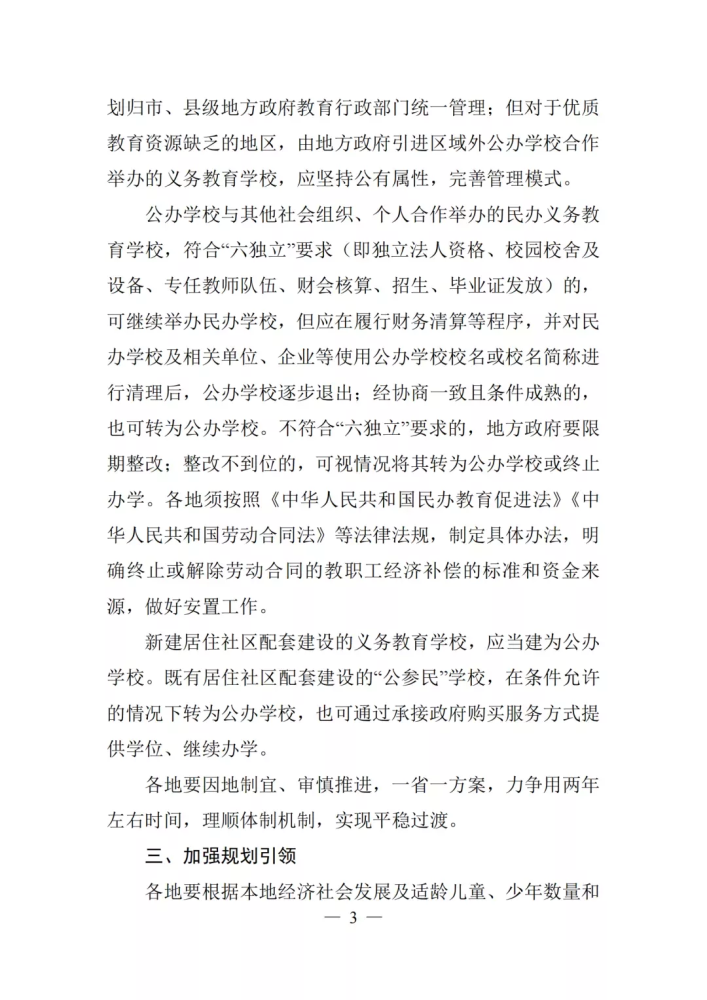 3. 對于不符合“六獨(dú)立”要求的民辦學(xué)校,要限期整改,整改不到位的,視情況轉(zhuǎn)為公辦或終止辦學(xué)。