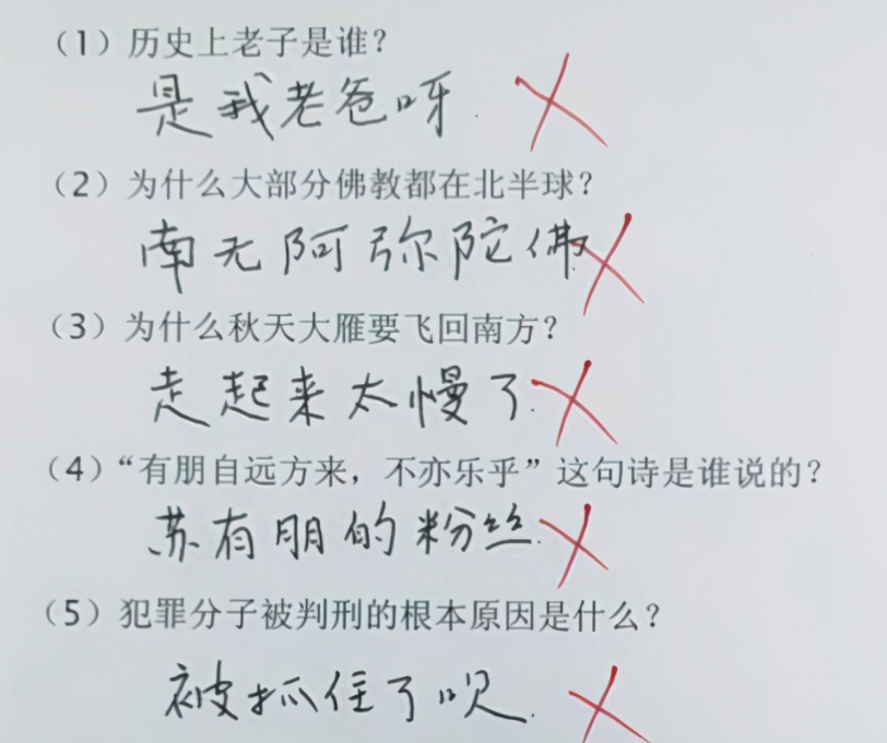 在考試中遇到不會做的題目并不奇怪,多數(shù)學(xué)生會抱著僥幸心理去“湊字?jǐn)?shù)”,心想:就算是答不對,老師應(yīng)該也會看在我寫了這么多字的份上多給兩分吧。但有些學(xué)生卻劍走偏鋒。