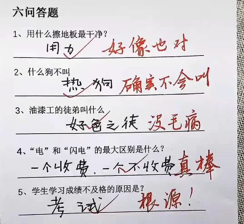 以上這些走紅的小學(xué)生“倒數(shù)第一”試卷,答案清奇好笑,讓我們看到了小學(xué)生腦洞大開的一面,看完讓人捧腹大笑,網(wǎng)友感慨:容嬤嬤附體了?感覺你這么不怕事兒呢?老師看完后自然是十分生氣,直言:來我辦公室。