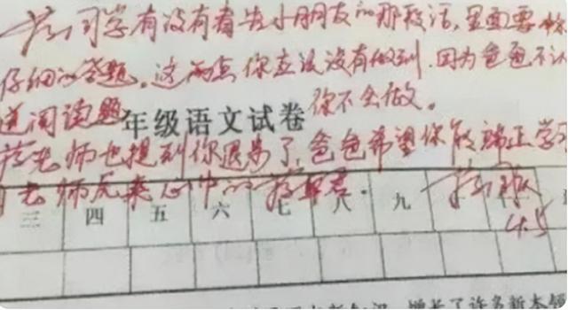 就在這樣的教育環(huán)境下,有的家長(zhǎng)的用心就會(huì)顯得格外貴重了,學(xué)生試卷上不僅有他們名字,甚至還有一些修改評(píng)語(yǔ)和總結(jié)。