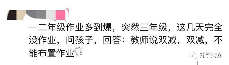 有三年級的家長也在說,“一、二年級作業多到爆,沒想到三年級完全沒作業了”。