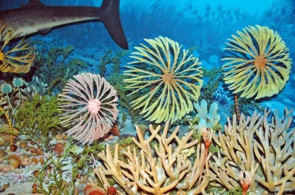 泥盆紀海底環境復原模型中的海百合 | James St. John